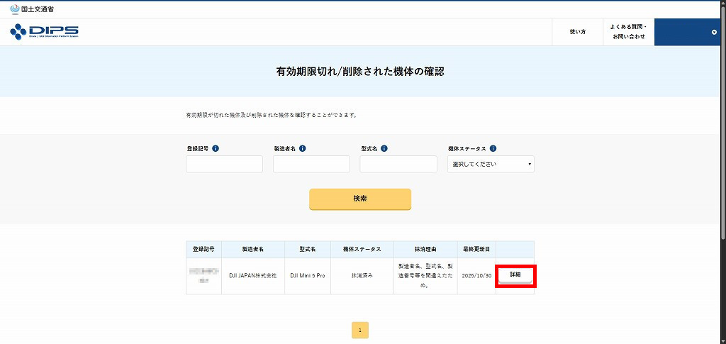 ドローン買取のご成約にあたり、DIPSの機体登録の削除をお願いしております。