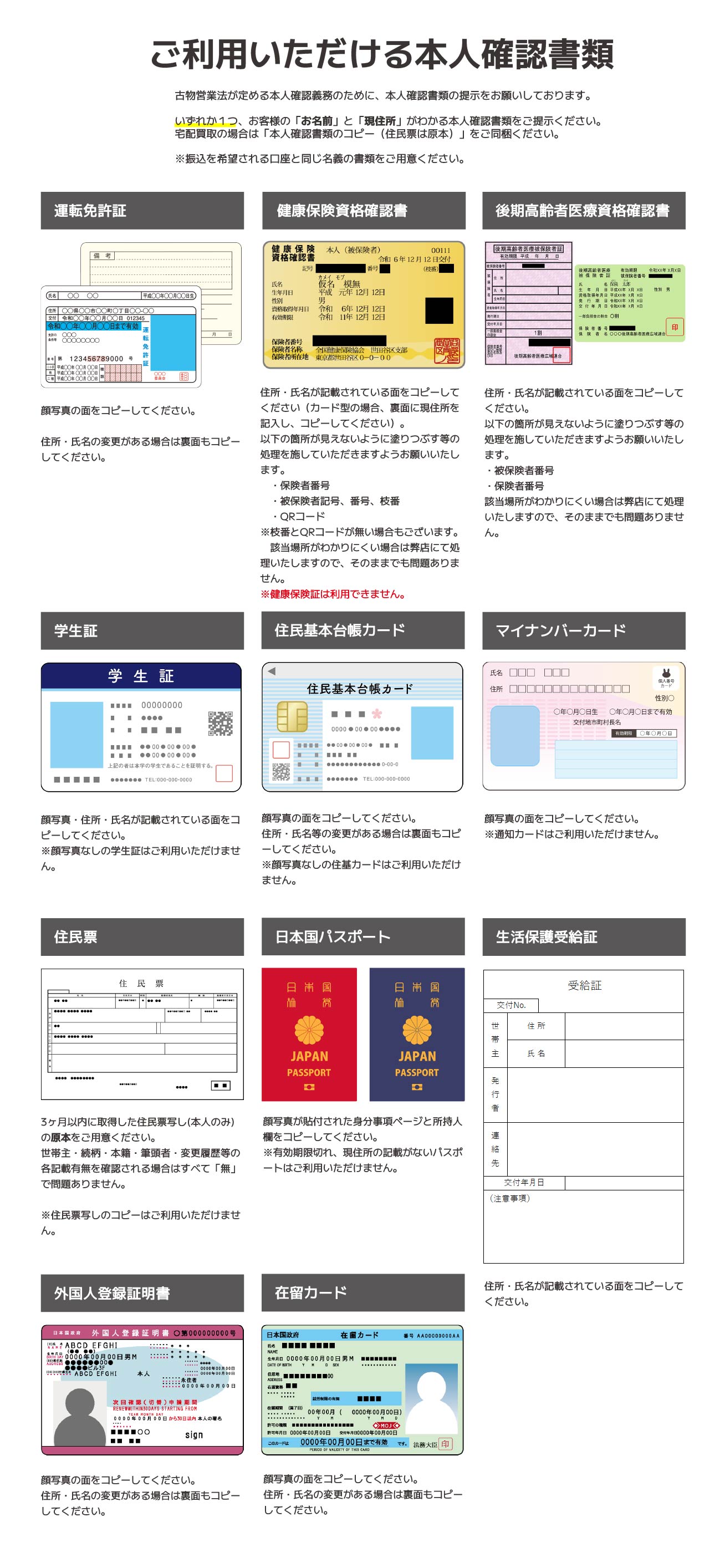 ※法人様もご担当者個人様の身分証コピーを同封ください。